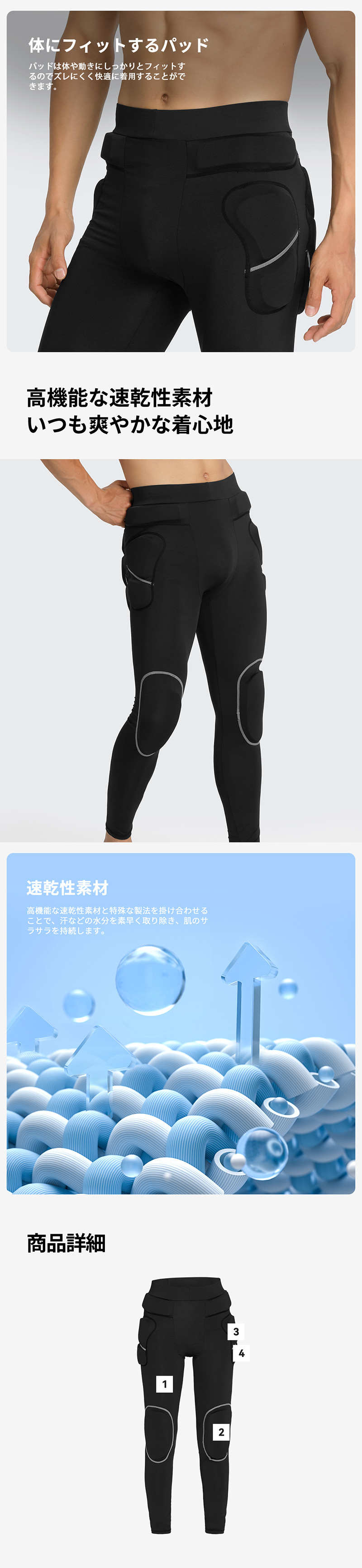 スキー スノーボード ウェア ヒッププロテクター インナー ロングタイプ メンズ al-sp24044