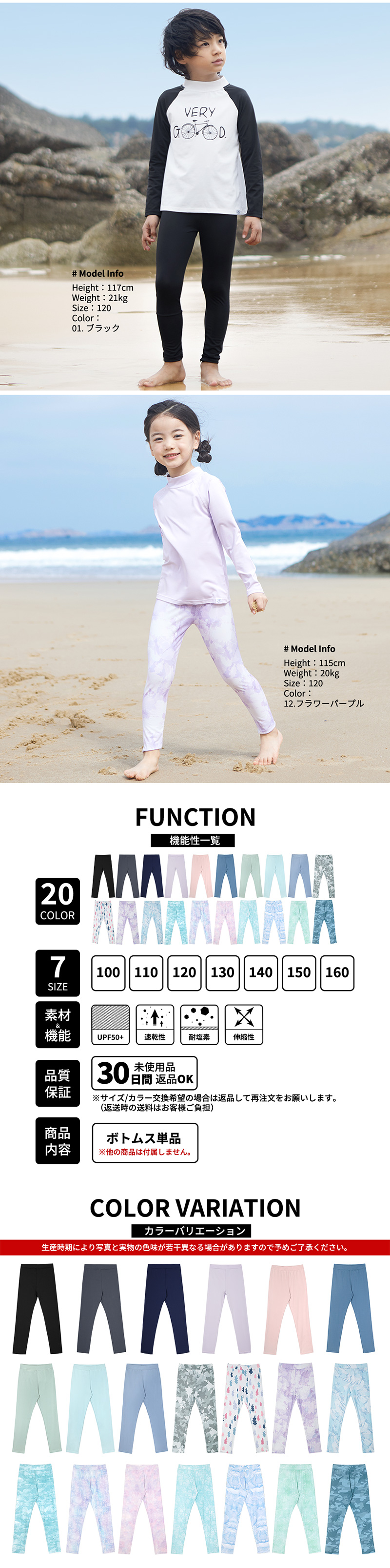 水着 ラッシュガード レギンス UPF50+ 単品 キッズ 男の子 女の子 ユニセックス al21012